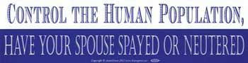 Control the Human Population, Have your Spouse Spayed or Neutered