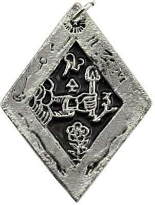 This is a powerful charm that will aid you in obtaining wealth and help you hold on to it once it is yours. Made in USA. Has cord. Pewter. 1 12" x 1"